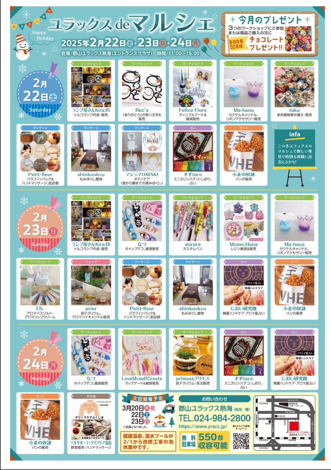 当日 3つの店舗でお買い物、ワークショップ、施術受けると各日先着50名様チョコレートプレゼント🎁